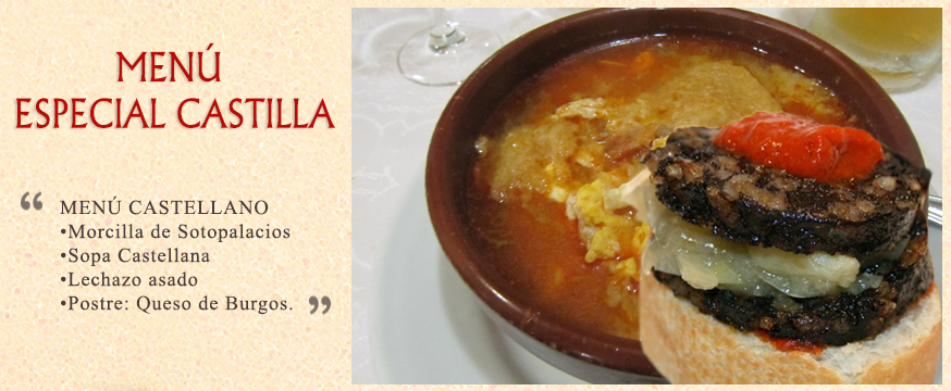Disfrute entre otras muchas, del pincho de lechazo, de nuestra famosa Parrillada de Marisco o del tradicional Cordero Lechal al Horno de Leña, sin olvidar la autentica Morcilla de Burgos, natural de Sotopalacios.